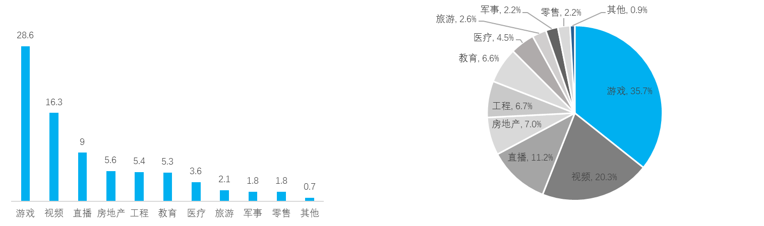 图3-9:国内虚拟现实主要应用领域结构(亿元)
