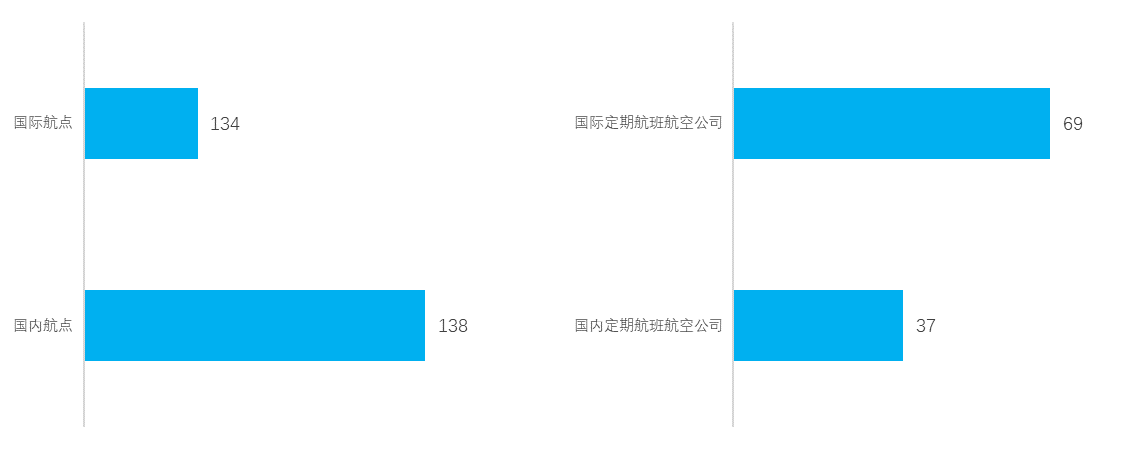 图2-9:浦东机场通航航点及航空公司数量(个)  数据来源:2018年上海机场年报