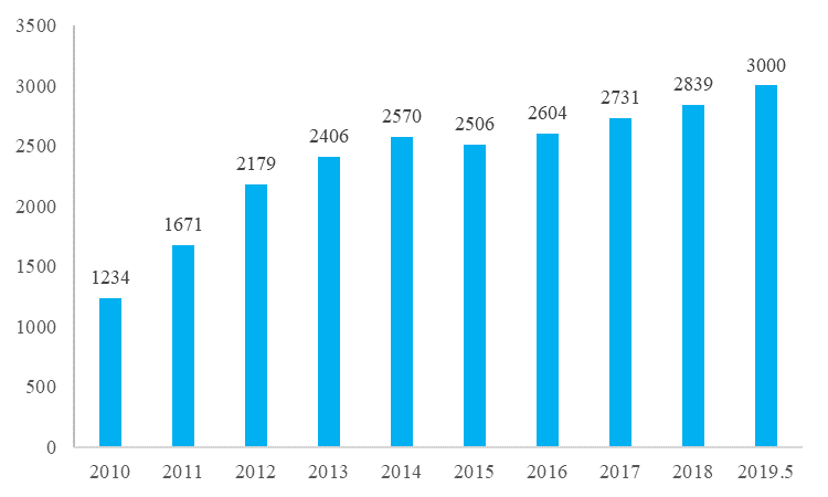 图3-4:2013-2018年国内居民消费支出(元)数据来源:国家统计局,智汇+整理