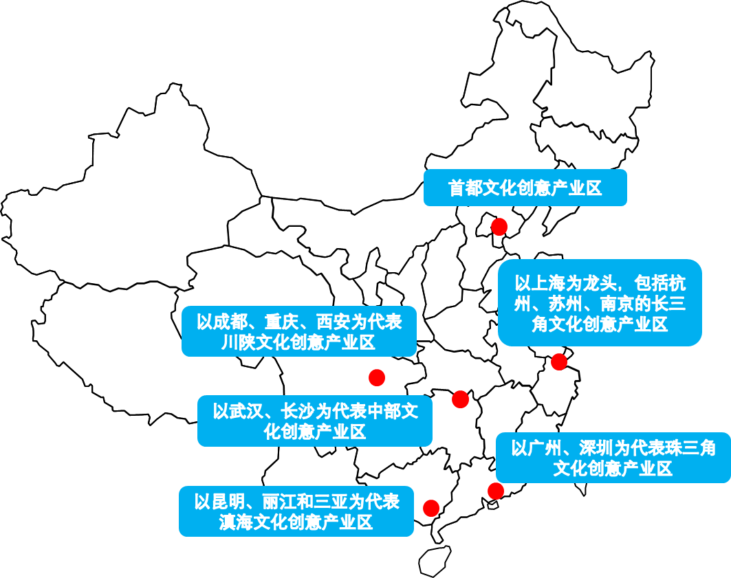 图3-7:我国文化创意产业集聚分布情况 资料来源:公开资料