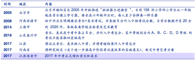 2.2.1 政策端,素质教育加速推广、国家政策引领以及艺术进中考,艺术培训基础端需求增加