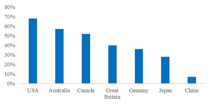 图2-7:各国有宠物家庭占比对比 资料来源:VCSaaS监测,智汇研究院